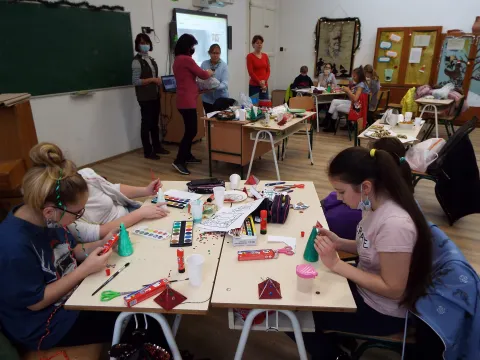 Iskolánkban, igaz rendhagyó módon, most szülők és vendégek nélkül, külön-külön az osztályokban zajlott a karácsonyi készülődés. A gyerekek apróbb ajándékokat, meglepetéseket készítettek szeretteiknek és egymásnak. A karácsony hangulatát vitték haza az elkészített apróságokkal. Intézményünk nevelőtestülete nevében ajándékcsomagot is kaptak az osztályok.